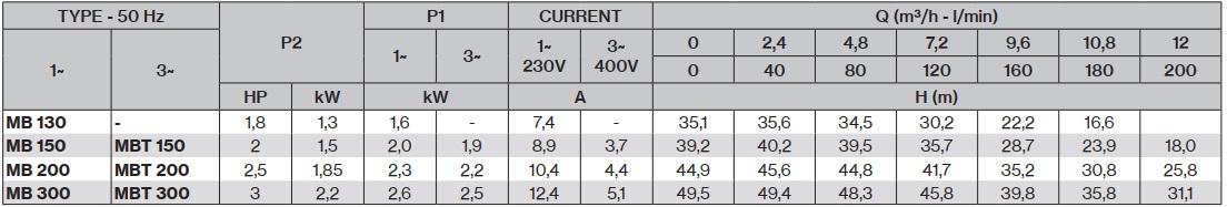 Máy bơm ly tâm Pentax MB Series là dòng máy bơm nước nó được sử dụng rộng rãi trong cấp nước, làm mát tưới tiêu, bơm đẩy cao đẩy xa, bơm hút nước giếng khoan , giếng đào, giếng khơi,các ứng dụng nông nghiệp và công nghiệp.