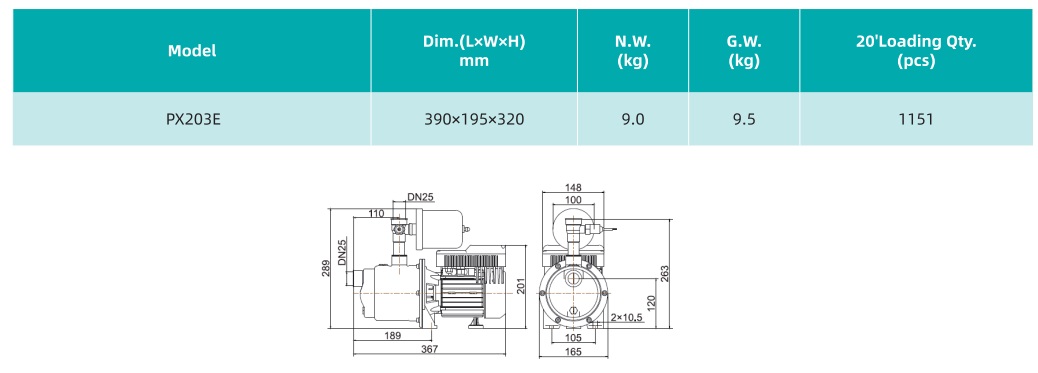 Máy bơm tăng áp biến tần Shimge PX203E là dòng bơm tăng áp tự động tích hợp biến tần 370w điều chỉnh áp lực theo yêu cầu người sử dụng…Thích hợp sử dụng trong hệ thống bơm tăng áp cho gia đình , biệt thự Máy bơm tăng áp biến tần là dòng bơm thông minh, tiết kiệm điện lên đến 20 -40 % so với các dòng bơm tăng áp khác & tối ưu nhất hiện nay. Bơm được tích hợp một thiết bị điện có khả năng điều khiển tần số của nguồn điện làm thay đổi tốc độ quay của động cơ Khi được tích hợp vào bơm thì biến tần có khả năng điều khiển lưu lượng & cột áp của bơm theo nhu cầu của người sử dụng một cách dễ dàng thông qua thông số áp lực được cài đặt. tăng áp tự động tích hợp biến tần dùng cấp nước & tăng áp cho các tòa nhà, trường học, khách sạn… Các hệ thống cần áp lực nước ổn định, chịu nhiệt cao, lưu lượng và cột áp cao.