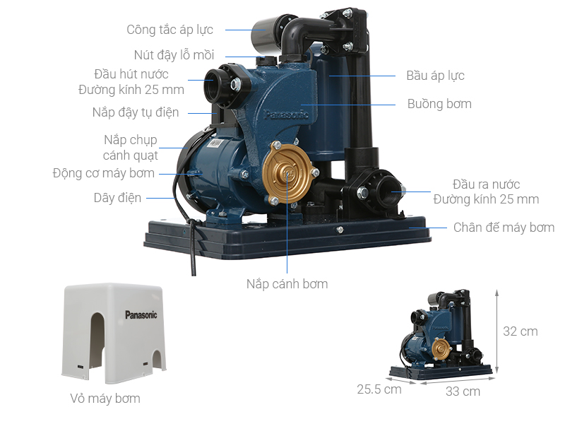 Máy bơm tăng áp Panasonic A-130JACK nắp vuông